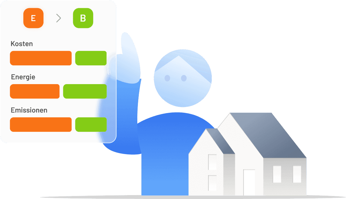 Die größten Einsparpotenziale finden, direkter Zugriff auf öffentliche Gebäudedaten an einem Ort, intelligente Sanierungsfahrpläne in Sekunden simulieren und regionale Dienstleistende sofort anfragen.